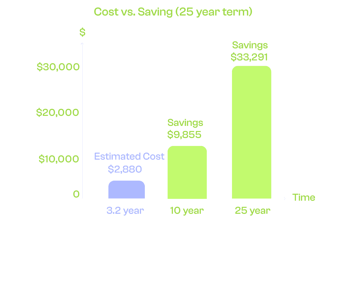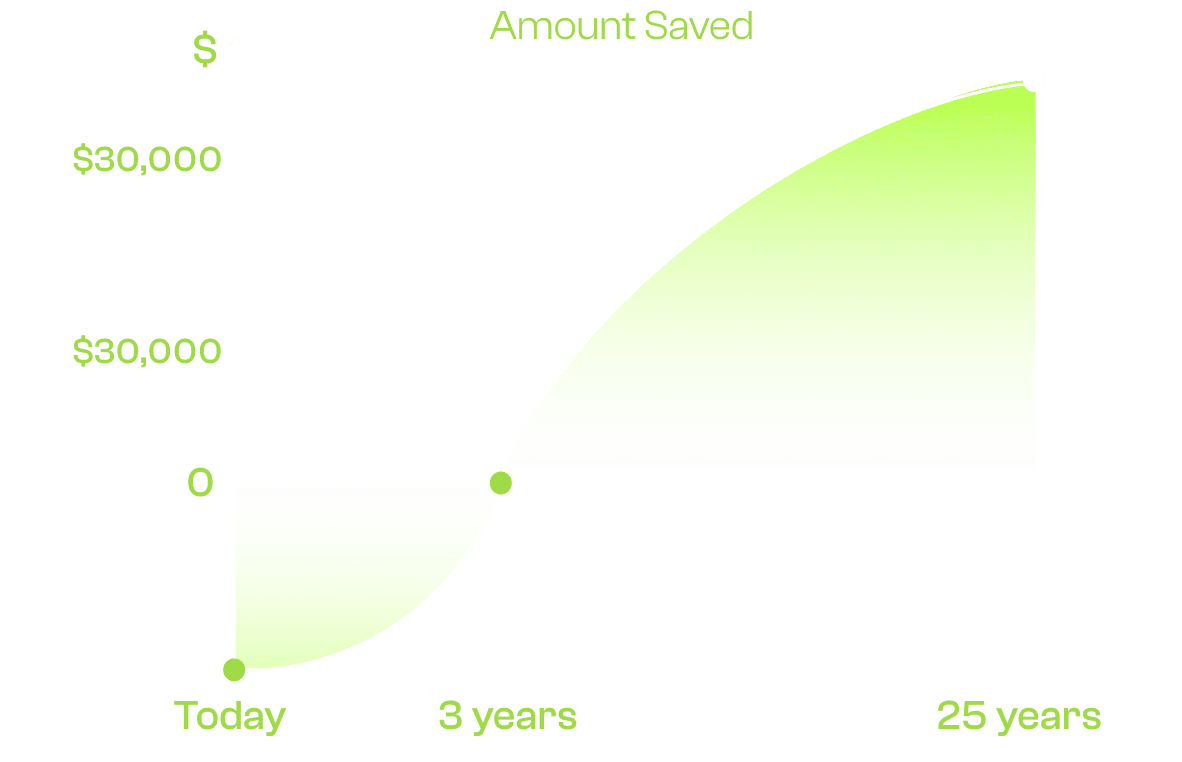 Graph shows cumulative savings vs cost over 25 years
